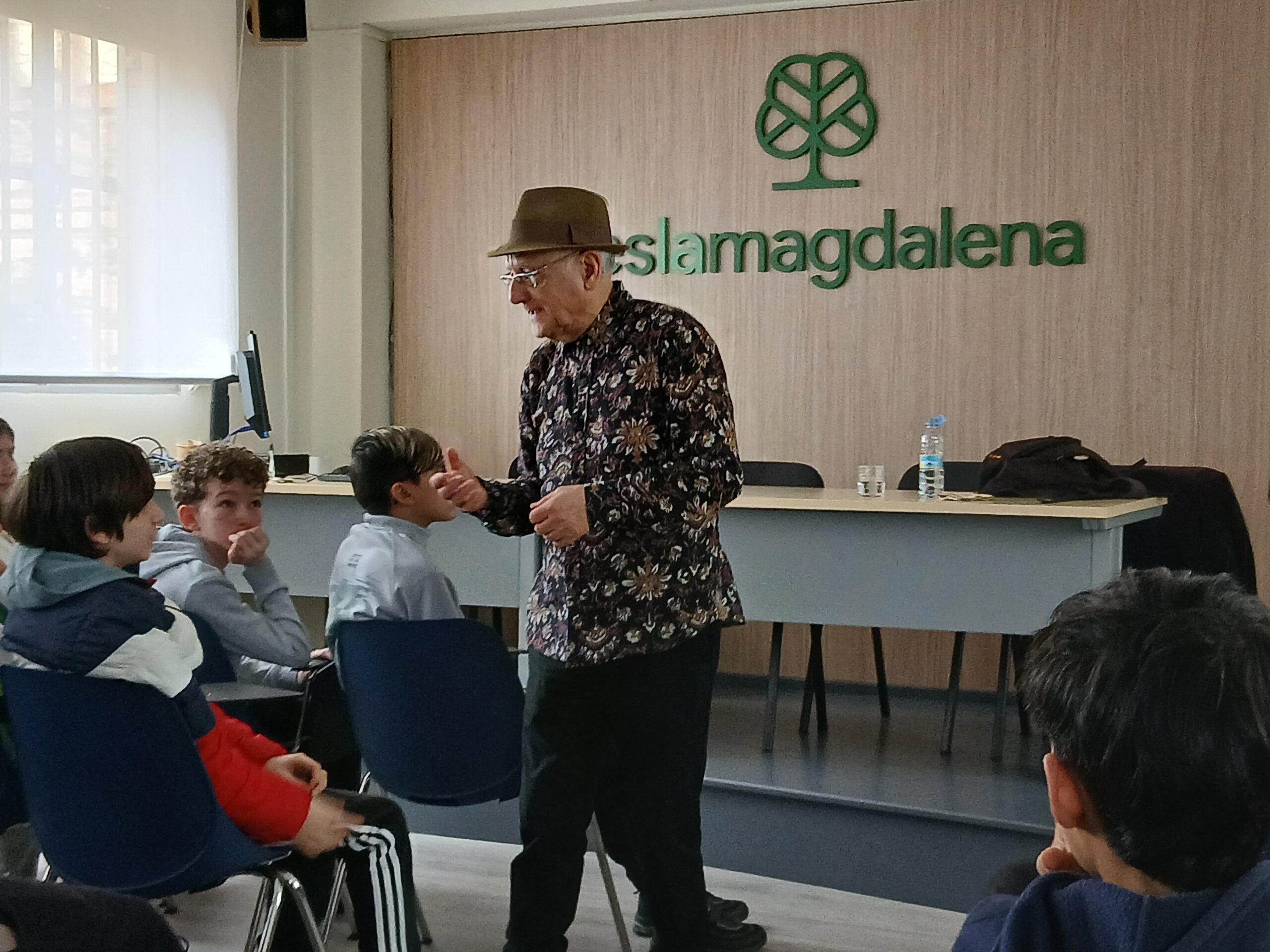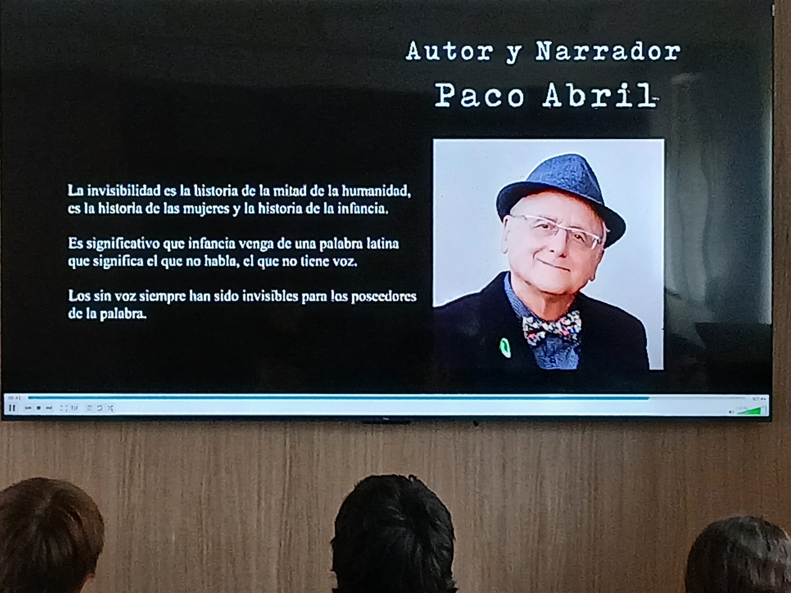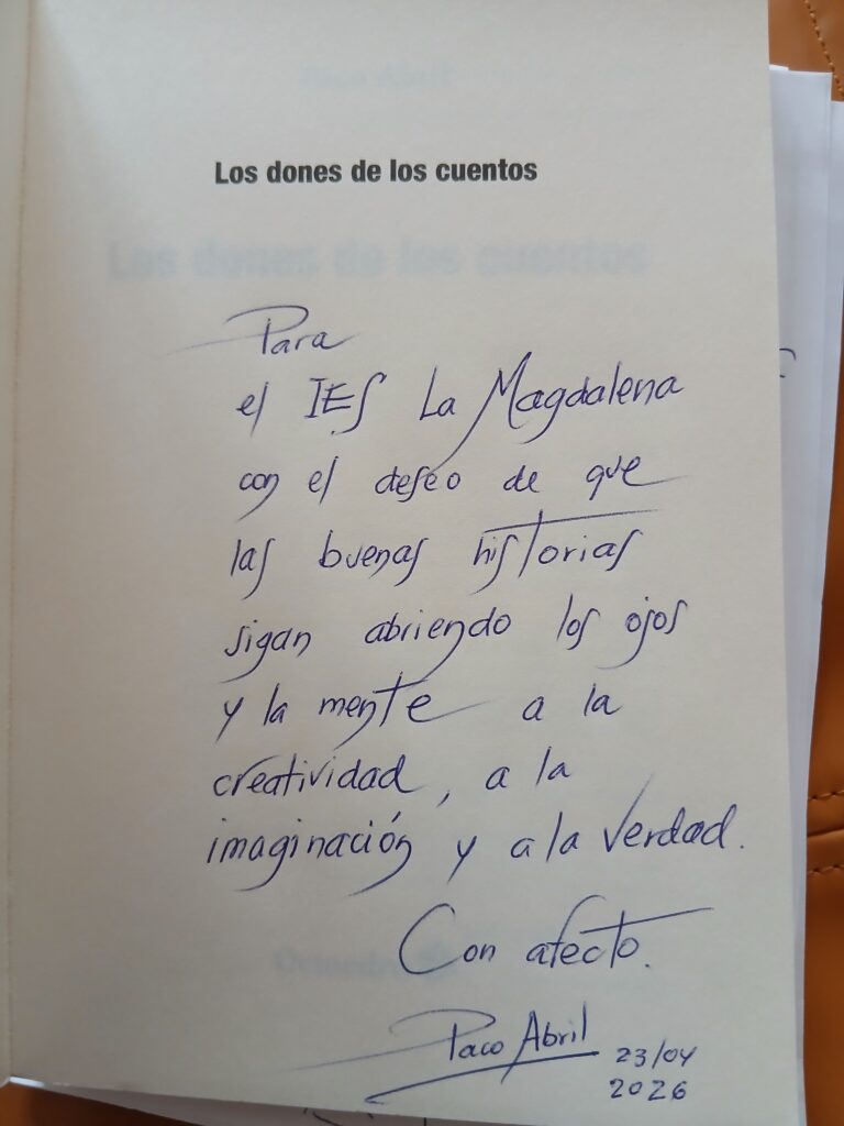 El jueves 23 de abril, para celebrar el Día del Libro, contamos con la presencia del escritor, experto en animación cultural y artista plástico, PACO ABRIL, famoso, entre otras cosas por La oreja verde, suplemento infantil que realizó durante más de veinte años en un periódico asturiano. Paco Abril dio dos charlas al alumnado de 2º ESO a partir de su cuento La niña de la nube. En ellas demostró que los cuentos no tienen edad y que el mejor antídoto contra la invisibilidad es aprender a escuchar “cosas que a las orejas maduras les parecen misteriosas”.