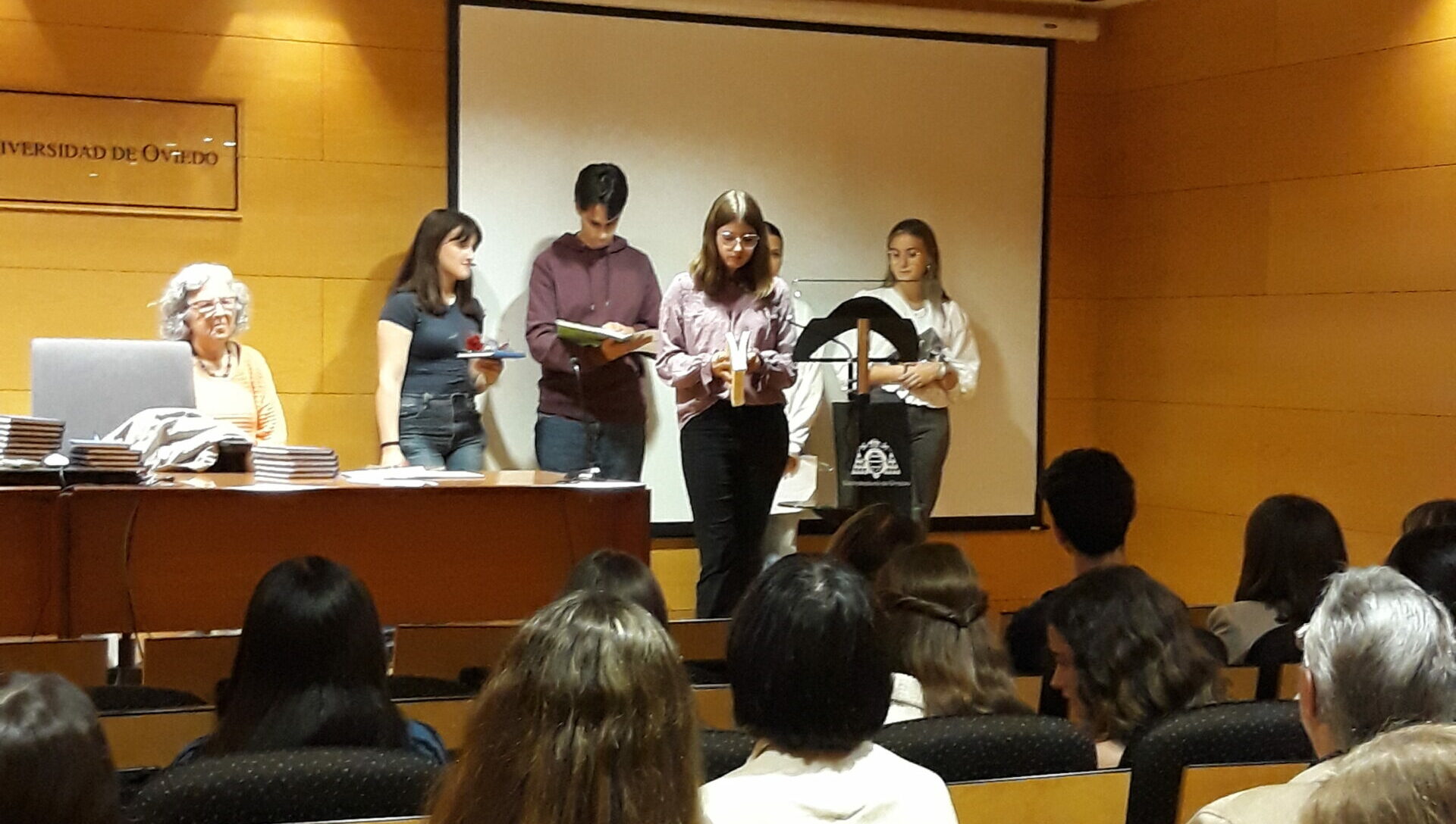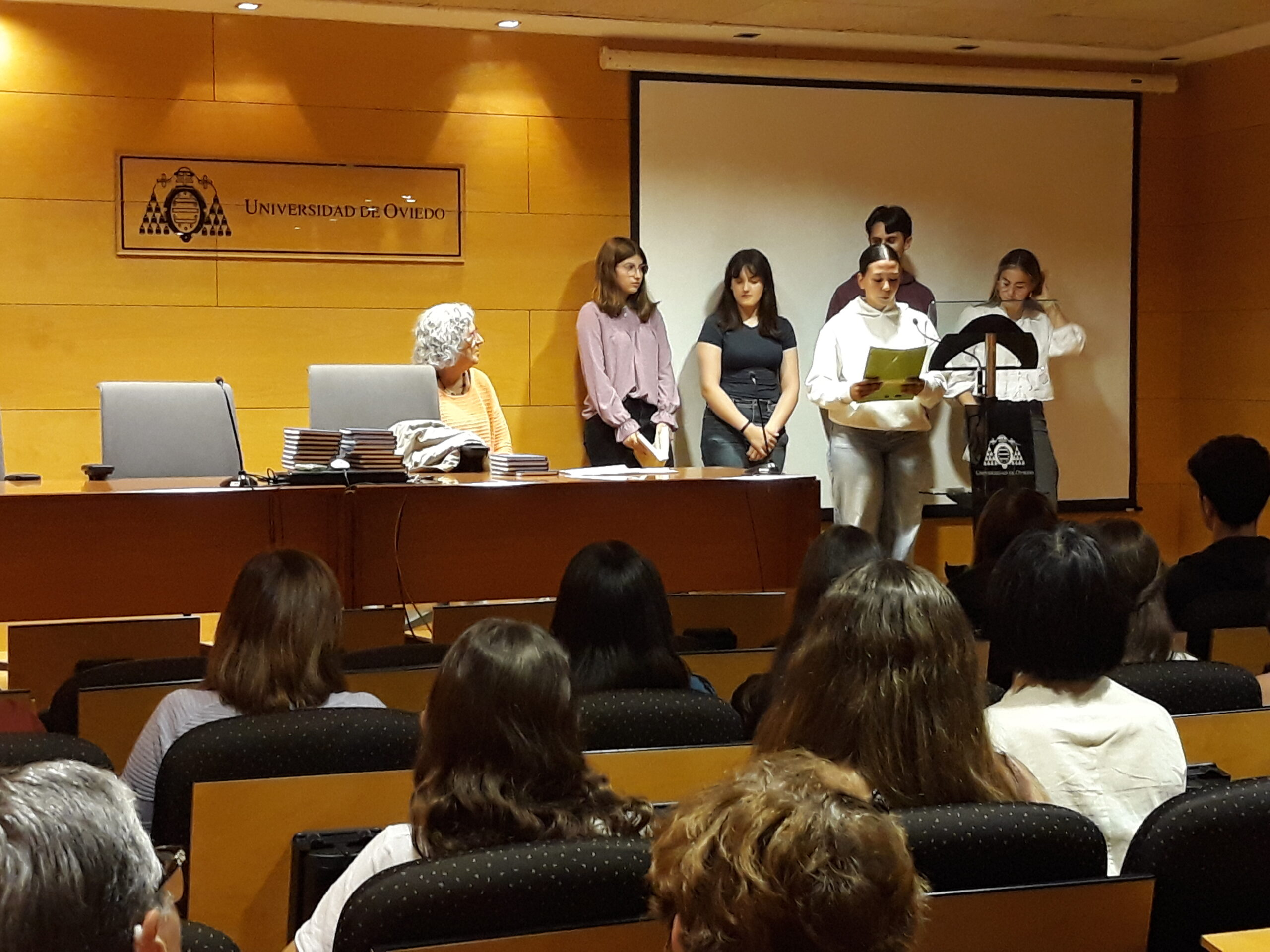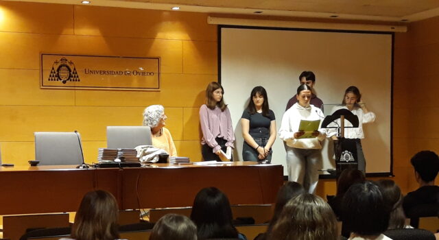 El 14 de octubre, alumnado de 3º ESO y de 1º de Bachillerato de nuestro centro, participó en la lectura conjunta de todos los institutos de Avilés que tuvo lugar en la Sala de Servicios Universitarios con motivo del Día de las Escritoras. Con la celebración de esta efeméride organizada por el Club de lectura ‘Una habitación propia’ que promueve la concejalía de Igualdad del ayuntamiento se reivindicó el legado literario de las mujeres.
