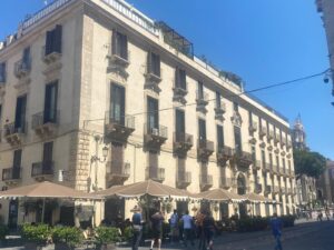 8/6/21. Tras llegar ayer por la tarde a Sicilia hoy por fin hemos comenzado nuestras visitas a las empresas. Primero conocimos a nuestro guía, Uriele, un catanés encantador, que aparte de llevarnos a las visitas nos cuenta cosas sobre la historia de la ciudad.