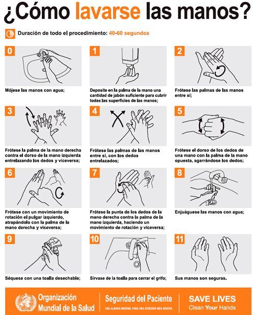 Las claves para una buena higiene de manos es que dure unos 60 segundos y frotar por todas partes, como se ve en la infografía o en este vídeo: