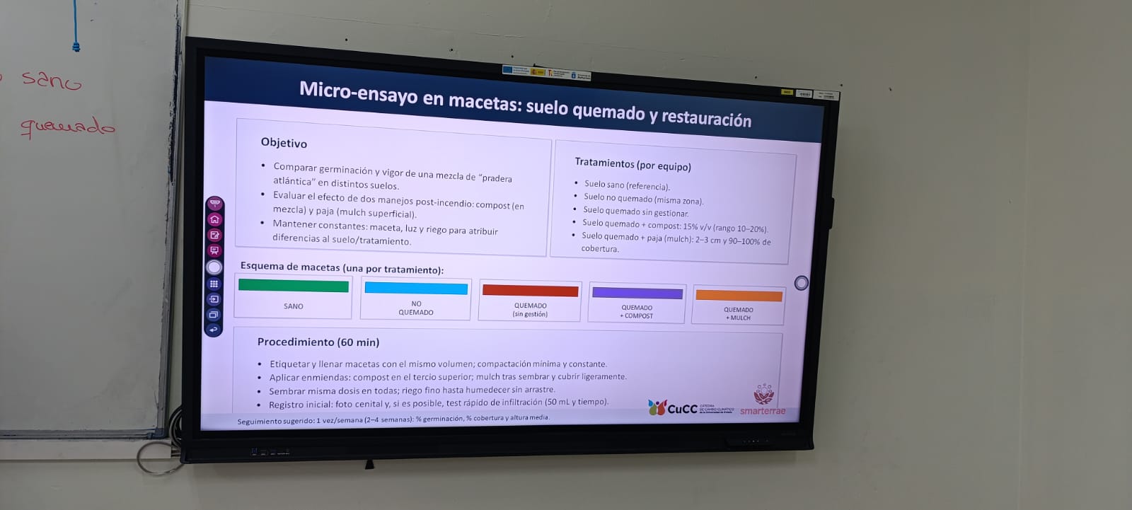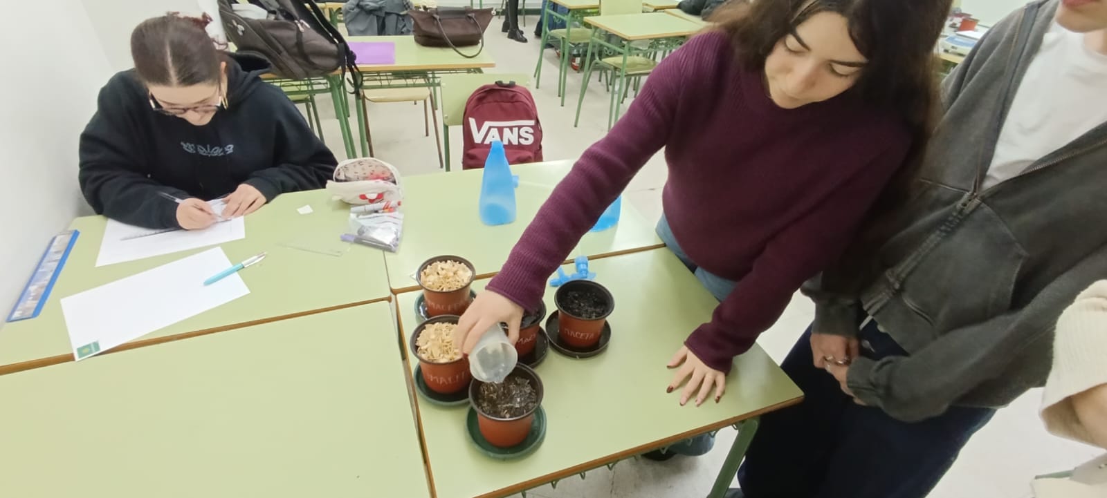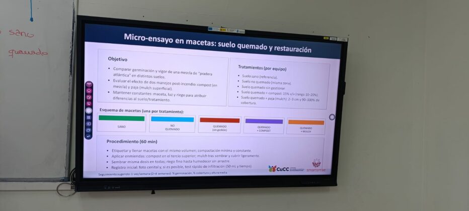 En él, el alumnado de 1º de Bachillerato BGCA trabajó por equipos comparando muestras de suelos en diferentes estados de degradación y registrando datos siguiendo el método científico.